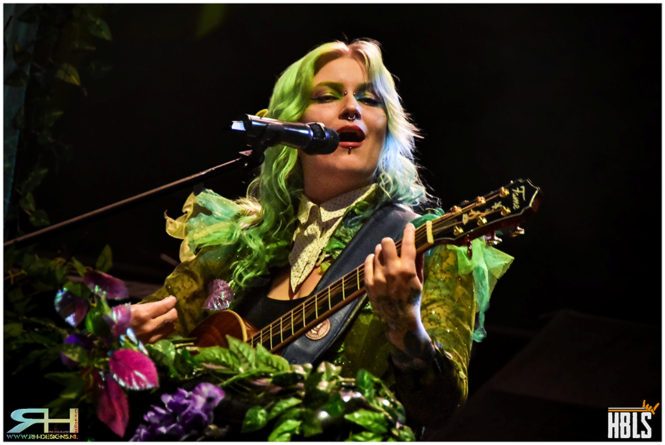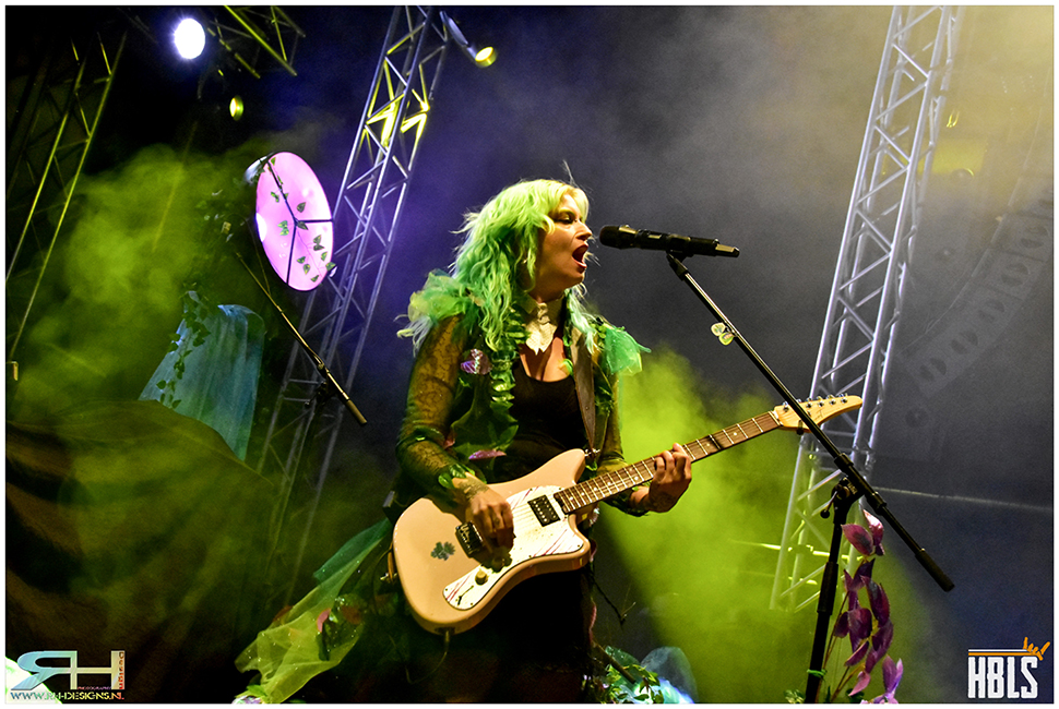 When I enter the venue around 7 p.m., I immediately notice that the available space on stage has been used to its full potential. It is crammed with the bands’ gear. Seraina Telli has the honor of kicking off today’s evening. As always, she is ready to party, but today is also the official release day of her new album ‘Green’.