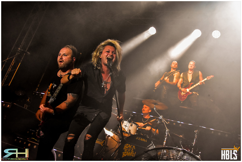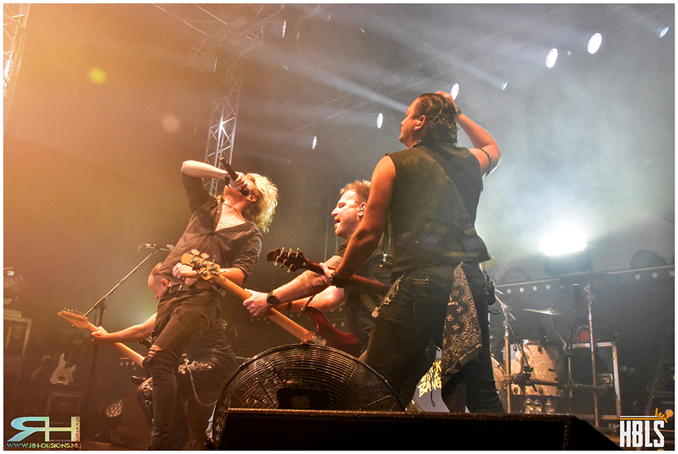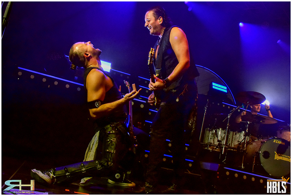 Hannes and his men kick off with ,,Back With A Bang” and the catchy ,,DNA”. The lighting and sound are excellent. Although the sound at Shakra was a little more to the point. But otherwise, there is nothing left to be desired at a Kissin’ Dynamite show. They make good use of their towering scaffolding on stage. Confetti cannons fire plenty at the audience, that is including some teenagers! It’s always cool to see that young people are also embracing this type of music.
